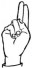 На ћирилици написано ЈОАКИМ ДАНГУБИЋ састоји се из 14 слова [?]. Исписано ћириличном једноручном азбуком за глувонеме: